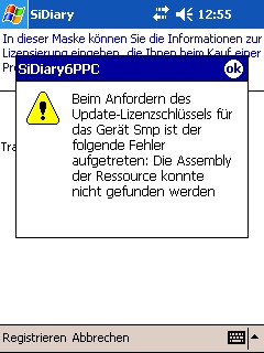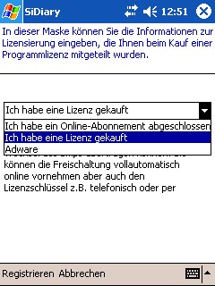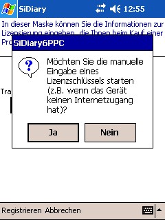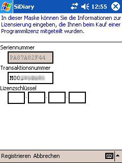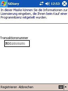 SiDiary Pocket PC mit Transaktionsnummer freischalten