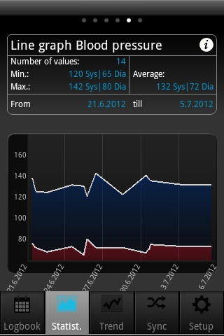 The line graph blood pressure shows you graphically how your blood pressure develops. The blue area shows the so-called 'amplitude', i.e. the difference