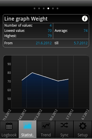 In the line graph you see the curve progression of your blood glucose measurements for the selected time range.