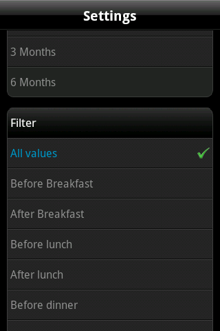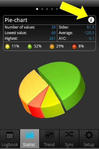 First you see the pie chart in the statistcs with the spreading of all your blood glucose measurements.