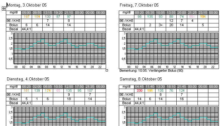 (Multi-Language-support!) Analog zur Vorlage der 24H-Darstellung, hier jedoch mit grafischem Basalratenprofil zu jedem Tag. Like the 24h template, but with graphical basalrate profile for each day. |