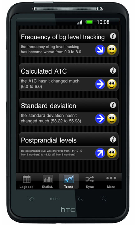 Un manuel d'utilisation (anglais) pour l'app diabète peut être trouvé ici: SiDiary Android-Diabetes-App manual