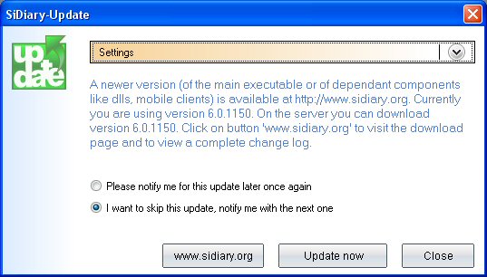 the update you have the most recent SiDiary version and can start the program