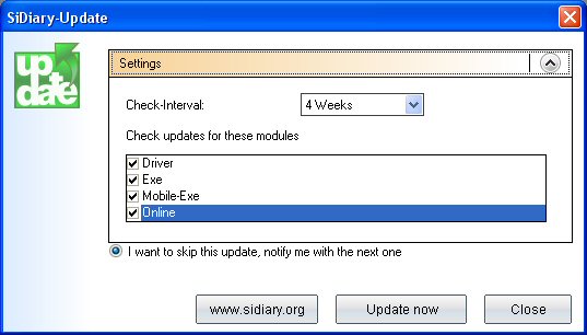 which program parts SiDiary should look for updates.