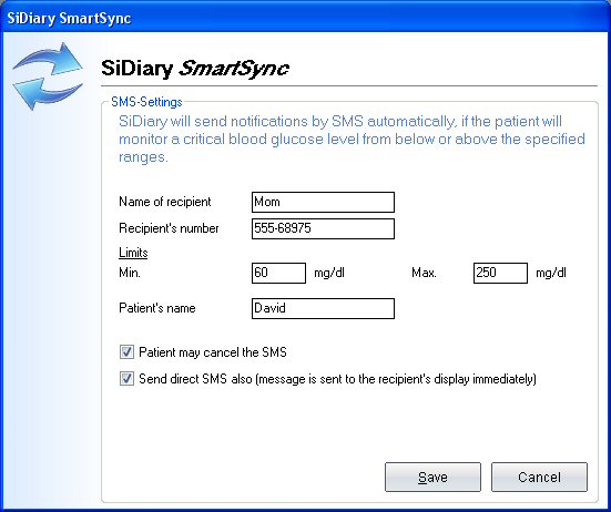 limits. When you get over/under your target range, SiDiary will send a message.